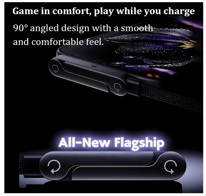 Designed with a 90-degree angled USB-C connector to reduce port strain, improve grip comfort, and ensure a secure fit. Ideal for continuous use while charging your iPhone 15-17, tablets, or any USB-C compatible device.