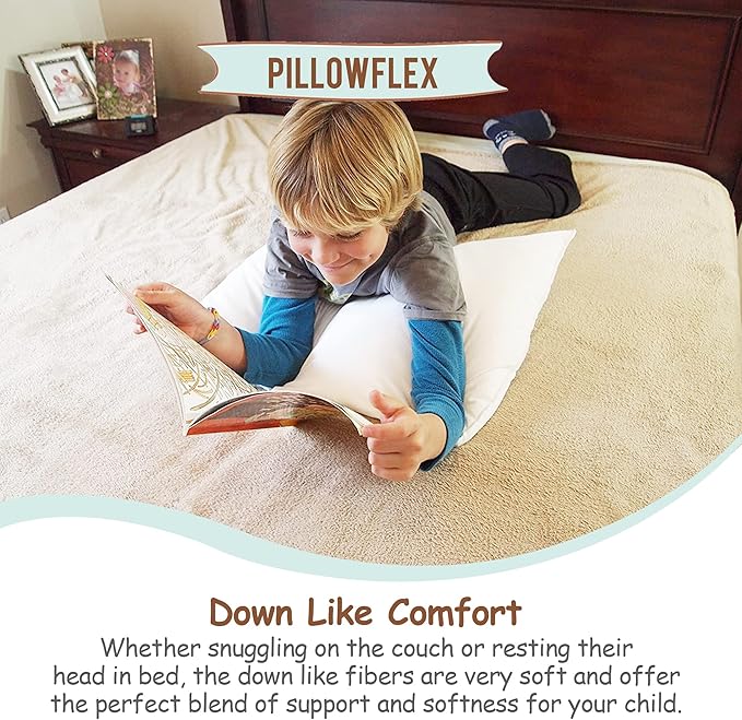 Pillowflex Sleep & Toddler Pillow (18x24 inches) - Soft Faux Synthetic Down Alternative, Perfect for Toddlers, Bed Pillows for Sleeping Wedge with Neck Support and Allergy Free Kid's Pillows.