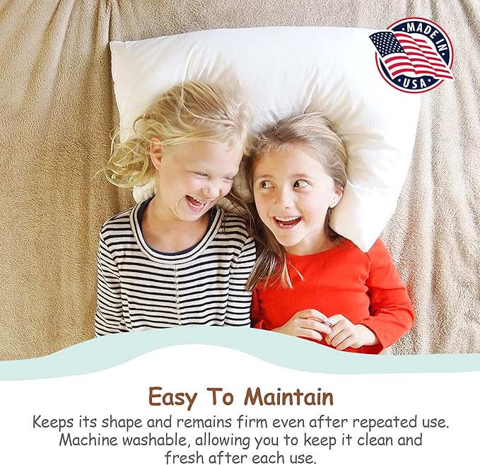 - WASHABLE & DURABLE - Traveling with kids just got a lot more comfortable with our soft pillows for sleeping! Our decorative pillows, inserts & covers for toddlers are not only soft and cozy, but are machine washable, so you can keep them fresh and new for longer.