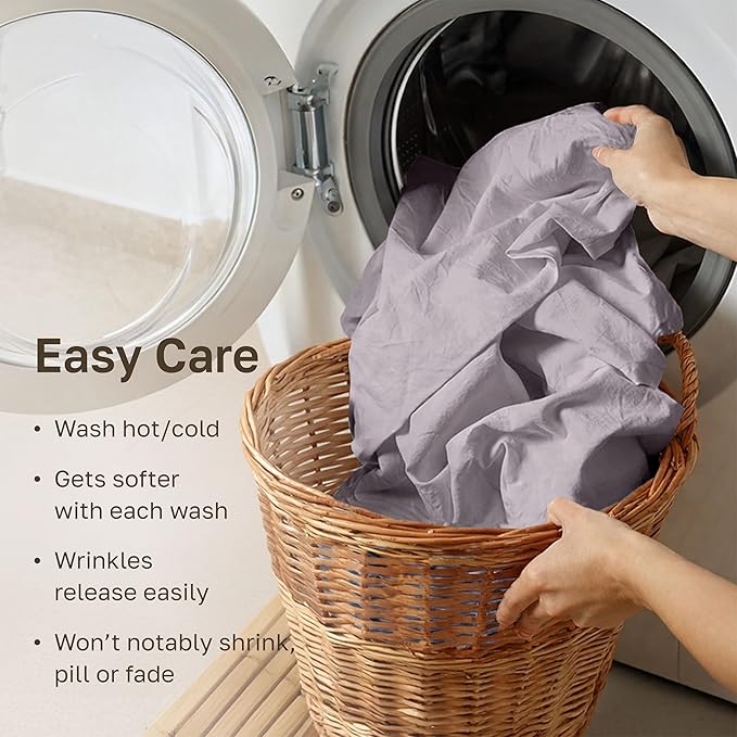 - Easy Care for Long-Lasting Quality: Durable 100% cotton cal king sheet set - gets softer wash after wash, just like your favorite denim. Every item with OEKO-TEX STANDARD 100 label is certified - passed safety tests for harmful substances. Lab-tested for pilling, fading, and shrinkage. Machine wash warm and tumble dry low; remove promptly to help reduce wrinkles.