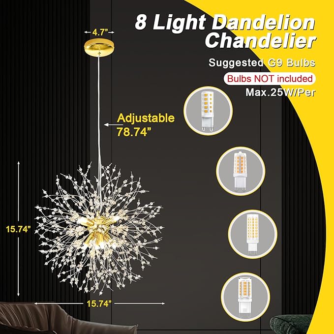 - Only Compatible with G9 BULBS: These chandeliers are compatible with G9/110-120 V bulbs (Bulbs NOT included). They can also be dimmed when used with a dimmable bulb and compatible dimmer switch (Not included). This allows you to create the perfect lighting atmosphere for any occasion