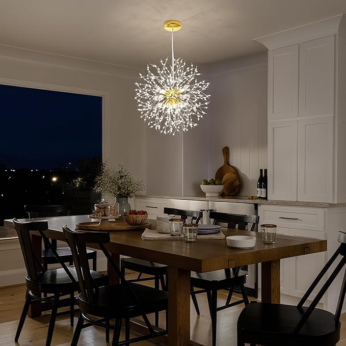 - Unique Crystal Design :The diamond starry design of these chandeliers is truly mesmerizing. The quiet stars emit a bright light, resembling a glowing dandelion and firework. The nano-cutting crystal beads add an extra touch of elegance, scattering sunlight into beautiful rainbows. When the light hits the crystal beads, they create hundreds of rainbow prisms in the air