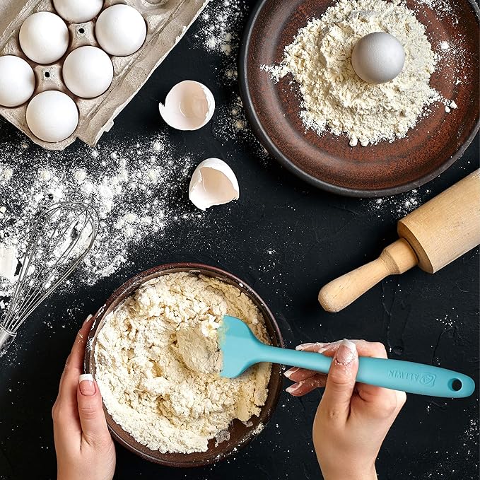 Silicone Spatula 3-piece Set, Ergonomic Handle High Heat-Resistant Spatulas, Non-stick Rubber Spatulas with Stainless Steel Core, Light Blue