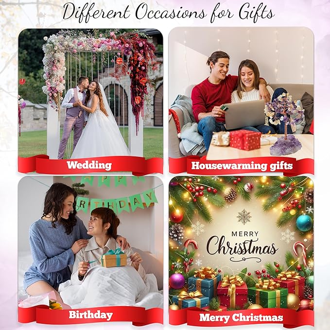 "Amethyst & Citrine Crystal Tree with Cluster Base Tree of Life Decor for Shelf, Bedroom, Birthday Gifts for Women, Sister Gift, Birthday Gifts for Mom, Cute Home Office Decor Housewarming present"