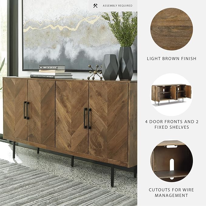 Signature Design by Ashley Prattville Contemporary Accent Cabinet with 4 Chevron Pattern Doors, Brown