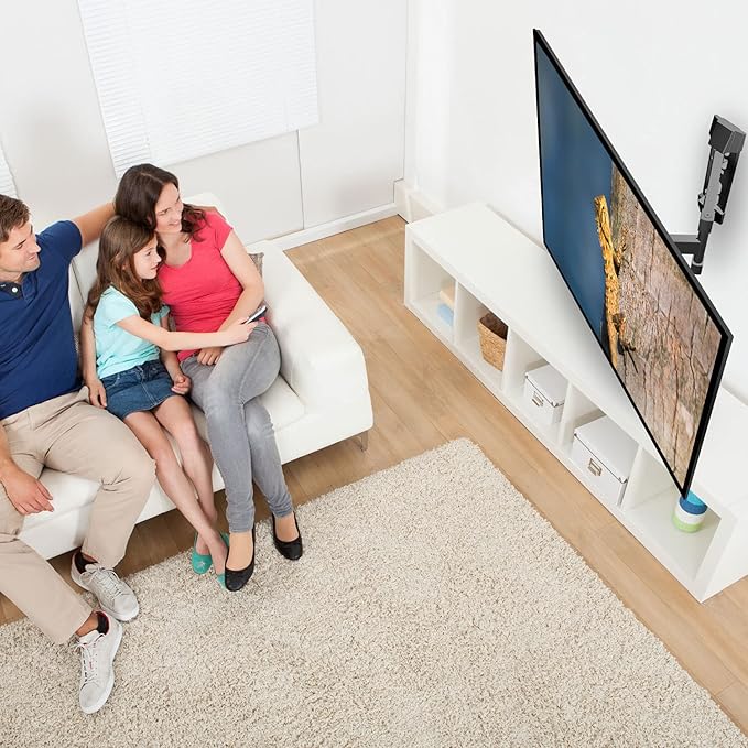 - ✅Easy Installation: This full motion TV mount is designed with the consumer in mind. Installation is simple, with easy-to-follow instructions and all hardware included. Integrated cable management and base plate covers hide unsightly cables and hardware, for a clean, sleek look.