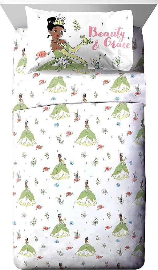 Jay Franco Disney The Princess and The Frog Beauty & Grace 7 Piece Full Size Bed Set - Includes Comforter & Sheet Set Featuring Tiana - Super Soft Bedding Fade Resistant Microfiber (Official Product)