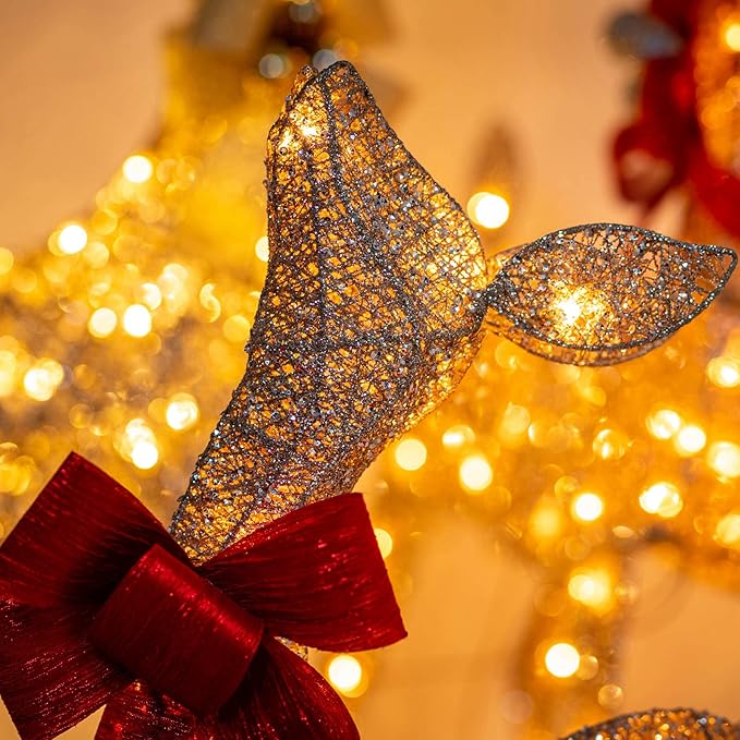 - Easy Assembly ♥ Assembly is a breeze with the modular design, requiring no tools and allowing you to create a festive scene in minutes. Please note that in order to increase the beauty of the deer, small gold sequins are glued to their bodies. During the installation process, a few sequins may fall off. We recommend finishing the installation outside or placing some newspaper underneath for easy cleanup.