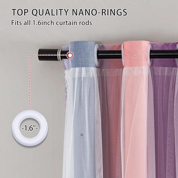 - UNIQUE DESIGN: Our kids curtains feature a double-layer design, with the inner layer showcasing printed blackout curtains and the outer layer adorned with tulle. Using cutting-edge laser technology, we intricately cut out stars on the inner curtain. When sunlight filters through, it creates a mesmerizing starry sky effect, perfect for sparking imagination and wonder.