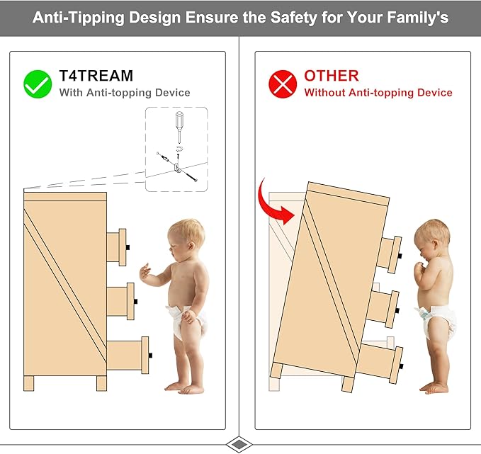 - 【Sturdy & Durable】Made from FSC-Certified wood, optimal MDF, P2 engineered wood for long term use, scratch resistant. No strong odor.The widened 2’’*2’’ dresser legs made the dresser does not slide easily, provide great durability and stability. With a support leg in the middle for added weight support.