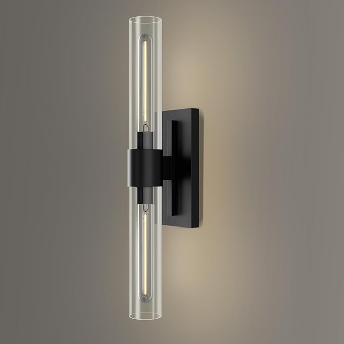 YUYI Black Wall Sconce, 22.8'' Wall Light for Bathroom Vanity, Modern Wall Lighting Fixture with Clear Glass Shade, Indoor Wall Sconce for Bathroom Vanity, Bedroom, Living Room, Hallway, Fireplace