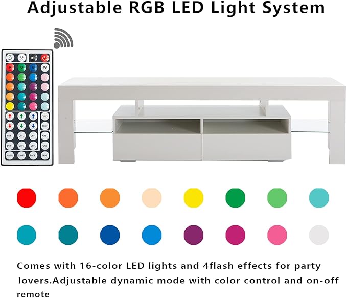 - 【Adjustable LED system】The TV stand adds fun to your house with top featured 20 colors 4 modes LED lights, providing an excellent immersive TV viewing or video game experience.