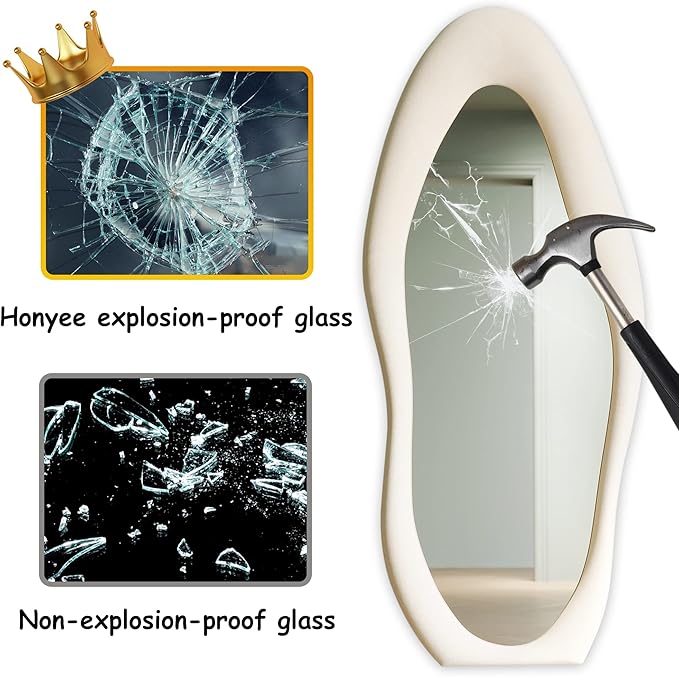- UNIQUE DESIGN: The shape of the full length mirror uses an irregular design. The footprint shape makes the entire mirror looks unique. It is very conspicuous in any space and makes your room look tasteful