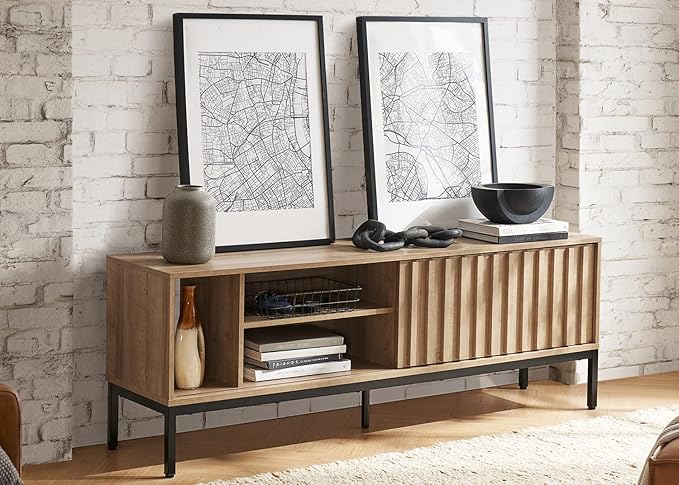 mopio Norwin TV Stand, Rustic Modern Industrial Television Stand for 60/65/70 inch TV, Fluted Entertainment Center with Storage, Wood Media Console Credenza Cabinet Table (Oak 64" TV Stand)