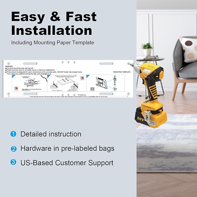 - Easy Installation: Mounting Template made layout easy and Package comes with all hardware needed; (User manual/videos help you install easily) Warm tips: If you need 10X50 mm concrete anchors, please let us know to get it