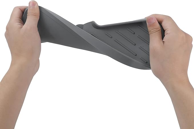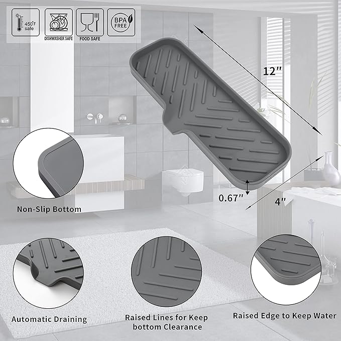 Silicone Bathroom Soap Dishes with Drain Spout-Bathroom and Kitchen Sink Organizer,Sponge Holder,Dish Soap Tray,Perfect for Dispenser,Scrubber,Bottle,Cup on Sink or Counter-Grey 12"×4"