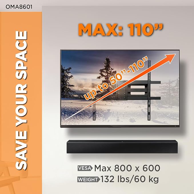 ProMounts Articulating/Full Motion TV Wall Mount, Tilt Swivel Wall Mount Bracket for Most 50-110 Inch, Corner TV Mount for Curved, Flat Screen, LED, LCD, OLED, Plasma TVs, Holds up to 132 lbs.