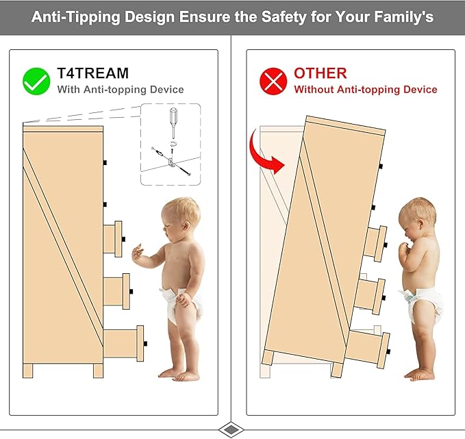 - 【Sturdy & Durable】Made from FSC-Certified wood, optimal MDF, P2 engineered wood for long term use, scratch resistant. No strong odor.The widened 2’’*2’’ dresser legs made the dresser does not slide easily, provide great durability and stability.