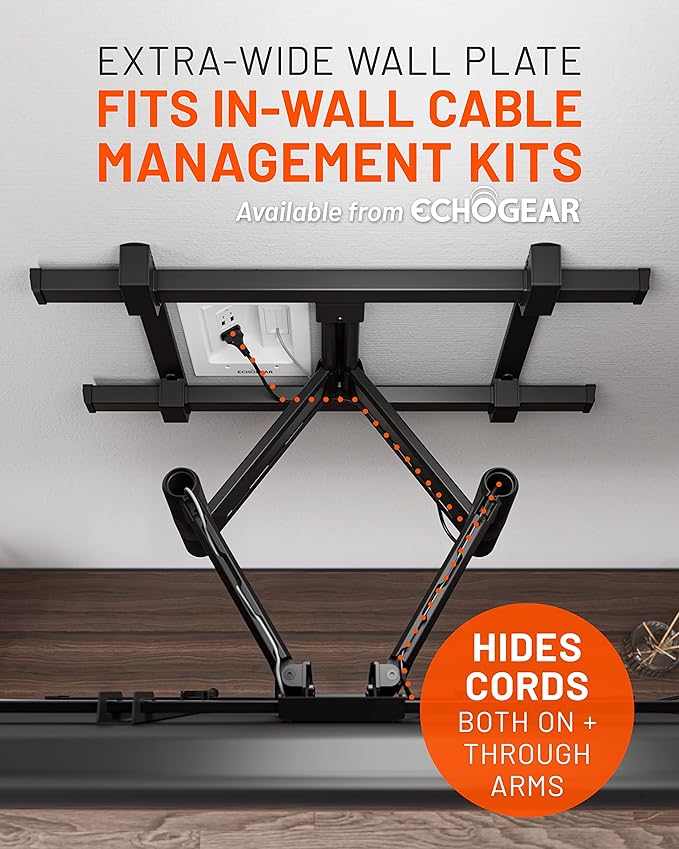 - A perfect pair with cable management kits! The mount arms feature built-in cable hiding capabilities and the wide wall plate fits any of ECHOGEAR's in-wall cable management options.