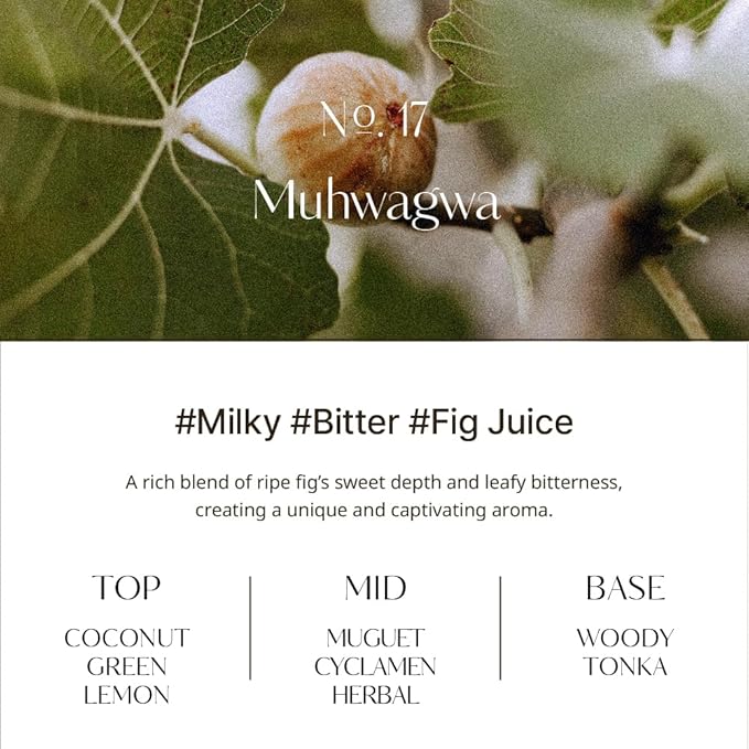- MUHWAGWA SCENT: Unveil the engaging blend of fig with the Muhwagwa diffuser. This fragrance combines the rich sweetness of ripe fig pulp with the subtle bitterness of fig leaves, creating a lush and captivating scent.