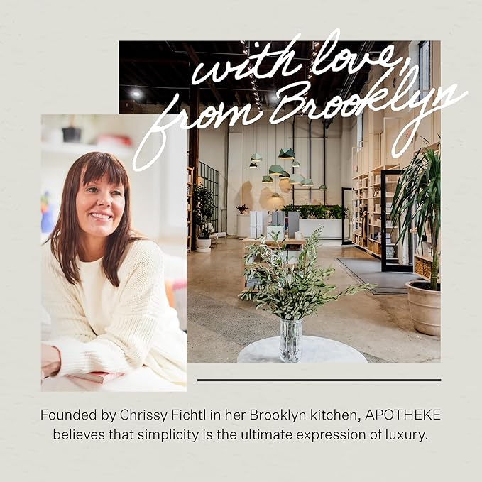 - With Love, From Brooklyn: Starting in 2011 as a personal exploration of scent formulation and soapmaking in a Brooklyn kitchen, founder Chrissy Fichtl has grown APOTHEKE into a renowned luxury lifestyle fragrance brand. True to its Brooklyn roots and contemporary ethos, APOTHEKE believes that simplicity is the ultimate expression of luxury.