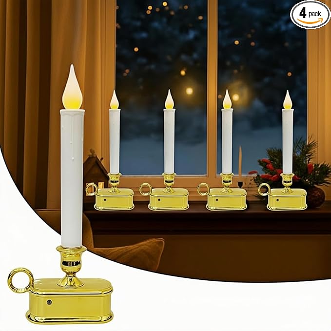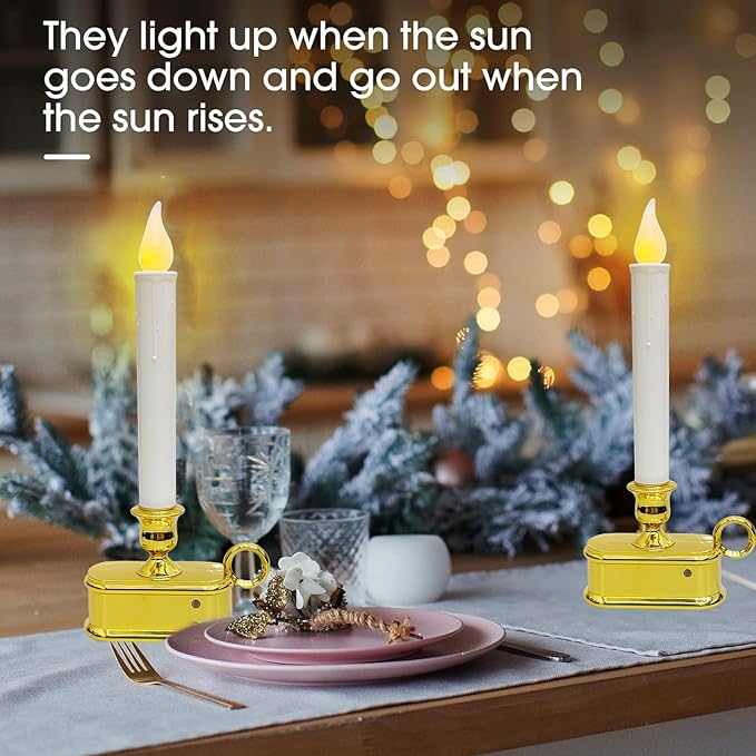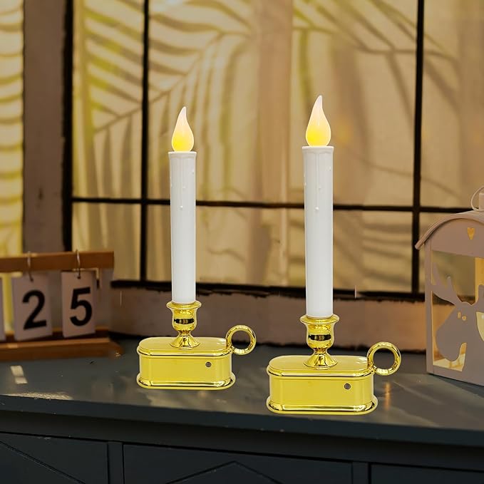 - Versatile LED Window Candle: The gold-plated base adds a touch of sophistication, making window candle lights a great choice for various settings. Perfect for mantels, tabletop Christmas decorations, windows, dining tables, kitchens, living rooms, and bookshelves, they effortlessly elevate any space.