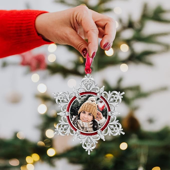 West style Snowflake Picture Frame Ornament Christmas Tree Ornaments Metallic Hanging Home Deco Hanging Pendant Holiday Keepsake Gift (Red, C Snowflake)