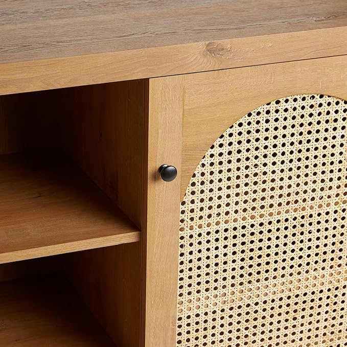 Walker Edison Sasha 2-Door Sideboard Buffet with Arched Rattan Panels, 58 Inch, English Oak