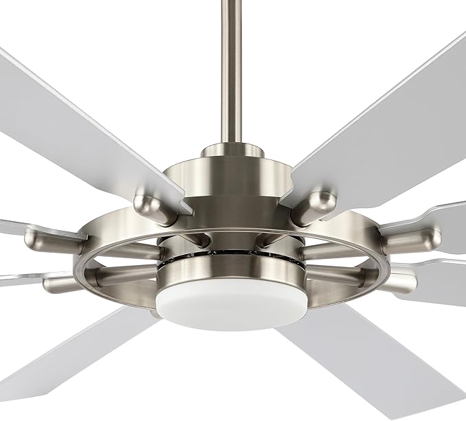 - LARGE CONTEMPORARY CEILING FAN: A contemporary design with a farmhouse touch. This 80-in ceiling fan featuring a striking windmill silhouette with 8 silver finish blades, which bring a rustic farmhouse look into your space.