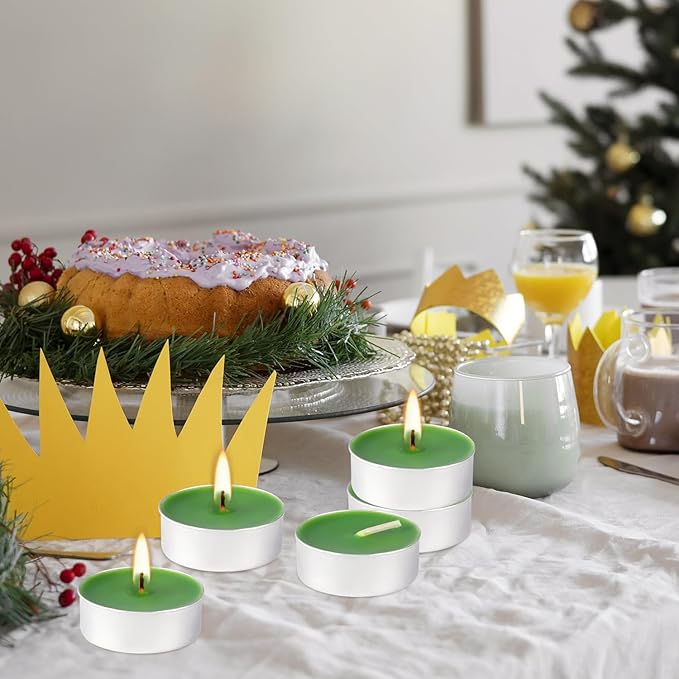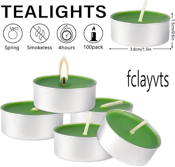- Dark Green-Colourful Tea Candle: 100 pack tealight candles set the colour according to the fragrance, this dark green scented candle is perfect for the living room, kitchen, bedroom, bathroom, enhancing the beauty of your home and providing you with a thoughtful service at the same time.