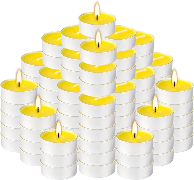 100 Pack Scented Tealight Candles 4 Hours, Lemon Aromatherapy Candles for Votive Home, Wedding Holiday and Emergency (Yellow)