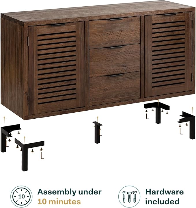 - 👉 HIGH-QUALITY MATERIAL: Featuring a 100% solid wood frame with a 5-layer chestnut finish and industrial metal accents, this credenza adds a touch of farmhouse style and exceptional durability to your home decor.