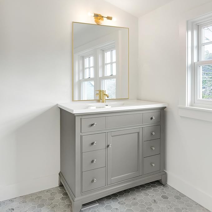 Frame My Mirror Gold Metal Framed Mirror, 24" x 36" Mirror for Bathroom, Metal Frame, True Reflections Glass, Gold Finish, Stanton Design, Hangs Horizontally or Vertically, Made in USA