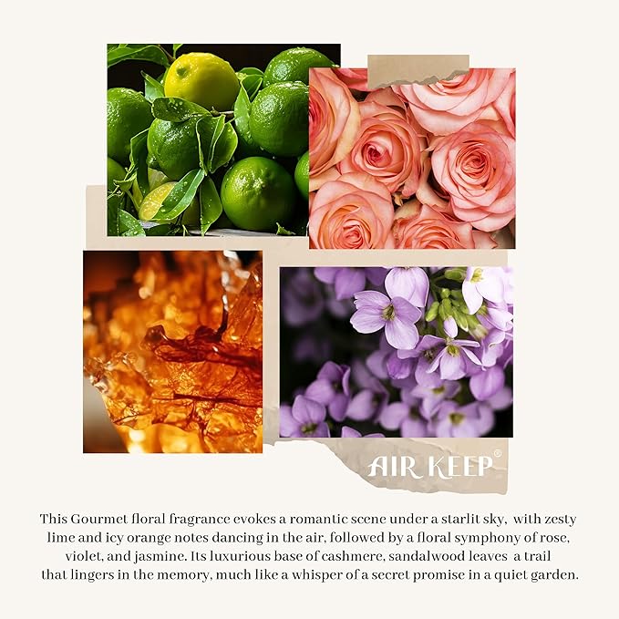 - Scent:Cashmere Vanilla.The fragrance is a romantic blend with zesty lime, floral notes of rose and violet, and a base of cashmere and sandalwood, evoking a serene garden under a starlit sky
