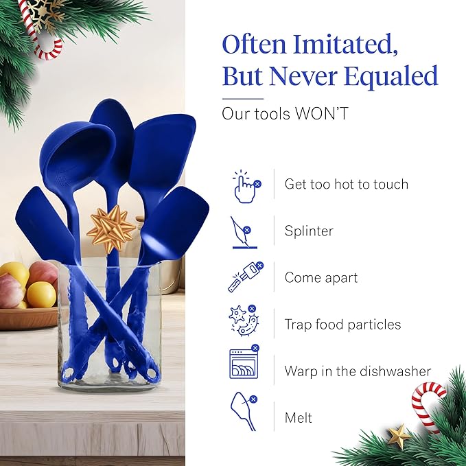 GIR: Get It Right - 5 Piece Essentials All Purpose Set - Ladle, Spatula, Flip, Spoon & Spoonula, Non-stick, Heat Resistant, Dishwasher Safe, Kitchen Utensils, Baking Supplies - Royal Blue