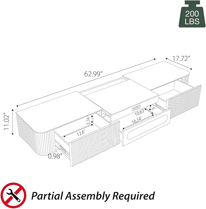 - Innovative Projector Integration: This TV stand isn't just for holding your TV (up to 55"); it's a complete entertainment solution. With a slide-out tray designed to accommodate a projector, simply pull it out when needed and enjoy a cinematic experience on a screen of up to 150 inches in your living space.