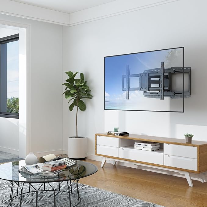 - 【SAVE SPACE】: This tv wall mount extend 19.09 inch with excellent range of motion, low profile retract 3.35" to the wall to save space, with cable ties manage TV cables save valuable space for you and make your house look neat