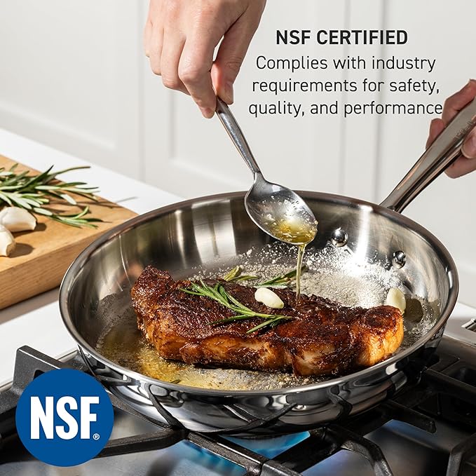- Crafted for Performance Cooking: Heavy-duty tri-ply stainless steel construction of this induction cookware set ensures durability for years to come. Certified by NSF, this cookware meets the highest professional standards for quality and durability