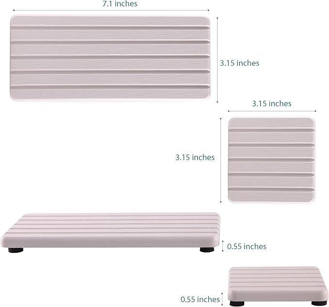 - Product A Size: 3.15 inch * 3.15 inch * 0.35 inch (8cm * 8 cm * 0.9 cm) Product B Size: 7.1 inch * 3.15 inch * 0.35 inch (18cm * 8 cm * 0.9 cm); Each package included: Product A*2; Product B*2;Silicone non-slip mat*16. Manual*1; Sandpaper*1; Tray Color: White