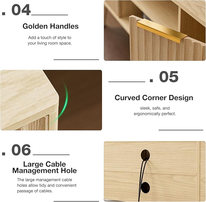 - Organized Storage: Features a middle shelf & 2 spacious cabinets for all your favorites. Plus, 2 rear cord holes keep wires neatly tucked away. Showcase or conceal – this modern entertainment center does it all with style.