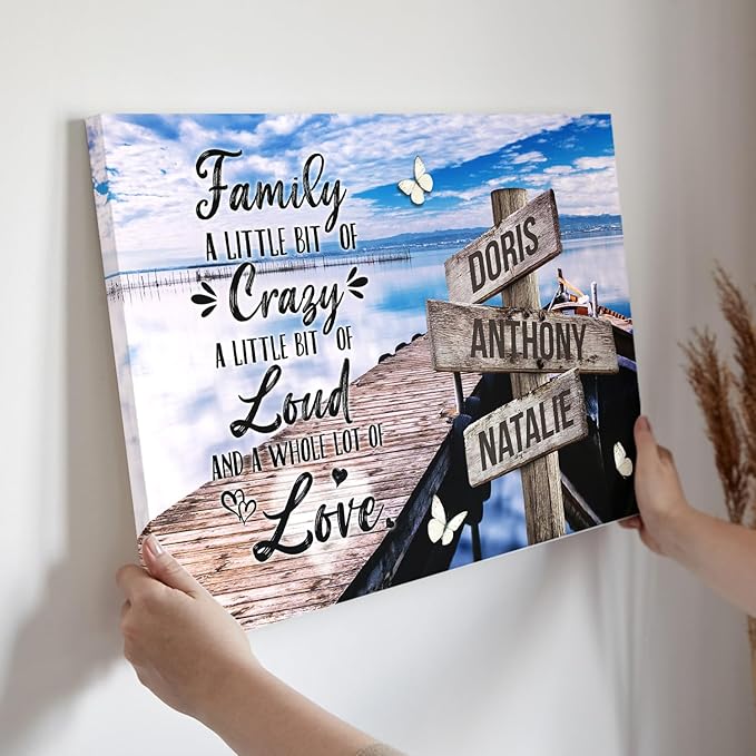 Dem Canvas Personalized Family Canvas With Names, Custom Wooden Sign Names Canvas, Family A Little Bit Of Crazy, Personalized Photo Gifts Street Sign Housewarming Gift