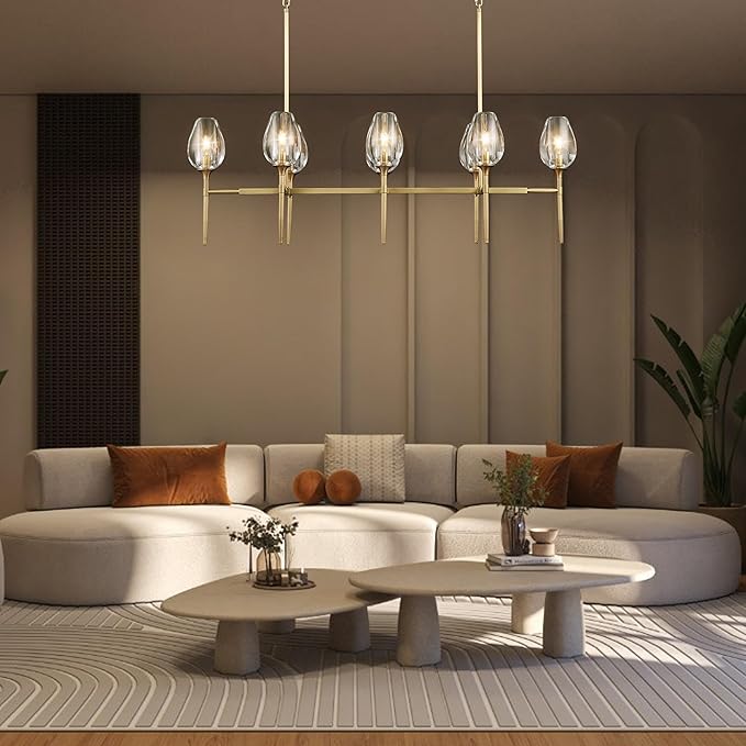 - Elevate your space with this stunning 52-inch gold tulip rectangle crystal chandelier, featuring premium k9 crystals for dazzling light reflection. Perfect as a modern chandelier for dining room, living room, or bedroom, adding elegance to any room.