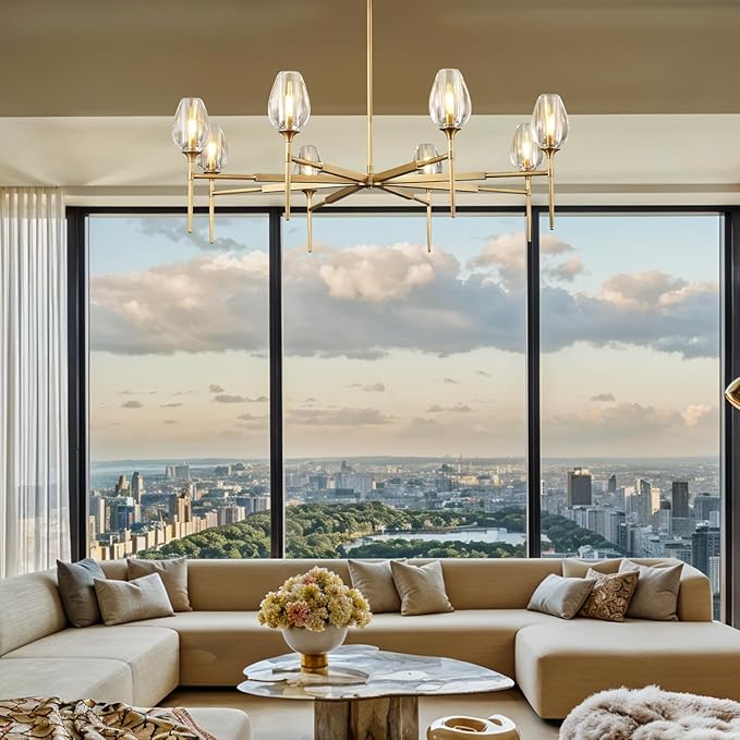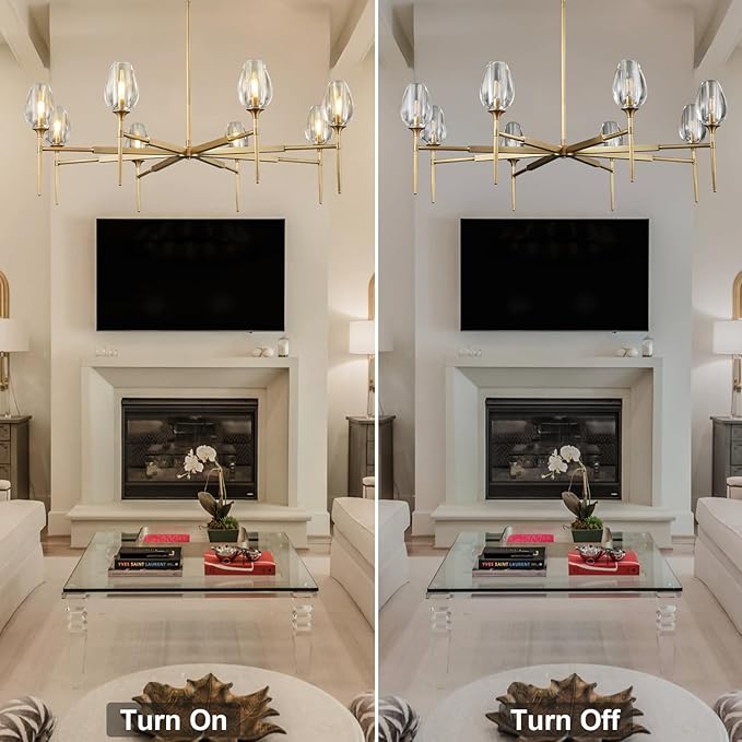 - Elegant Wine Design: This farmhouse chandelier is designed with elegant wine-shaped clear glass shade and brass finished metal. The minimalist design perfect blend of vintage and modern tone styles to provide a luxury and modern fashionable ambiance to your space.