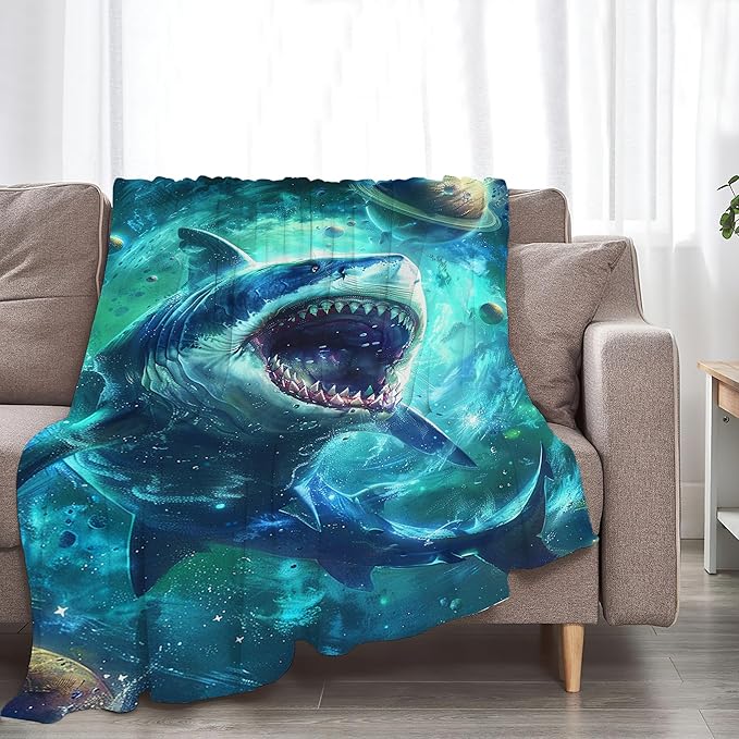 Funny Shark Throw Blanket, 60"x50", Multicolor, Microfiber, Shark Quilt, Modern Style, All Ages, All Seasons, Heavy Weight, Easy Care