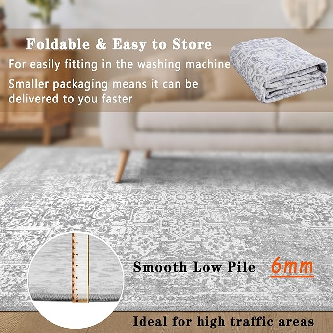 - Kid&Pet Friendly : machine woven with low pile, these rugs are constructed with premium materials. Each rug is lightweight and stain resistant that’s easy to vacuum clean, perfect for those with kids and pets. Without being dirt and dog hair trap, save cleaning time. Elevate your space with the beautifully distressed, antique look of this rug.