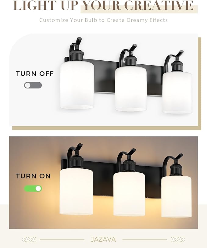 - Suggested Bulb Required: This vanity lights for bathroom requires 3 x E26 A19/ST58/ST64 LED Edison Bulb, MAX to 60W. (BULB NOT INCLUDED). When you use dimmable bulb and dimmer, you can DIY the lighting effect you want.
