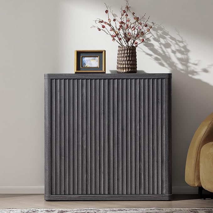 - 【Minimalist & Practical】- The storage cabinet boasts a minimalist curve profile and doors with a unique waveform panel, setting it apart from ordinary furniture pieces. Equipped with pop-up design doors that offer easy access to stored items while maintaining a sleek and seamless appearance. This distinctive design adds a touch of sophistication and style to your living space, enhancing the overall aesthetic appeal of your home decor.