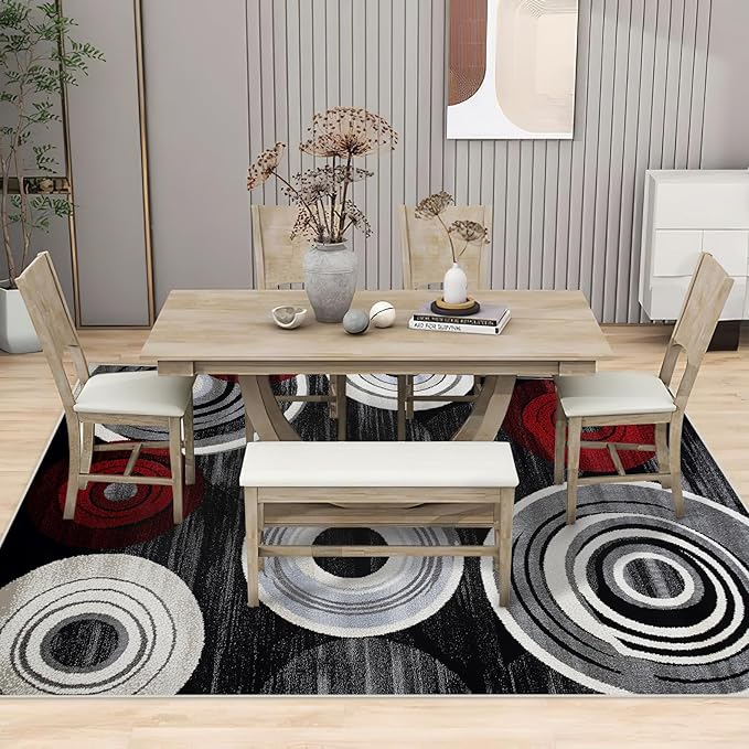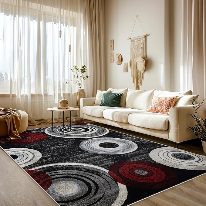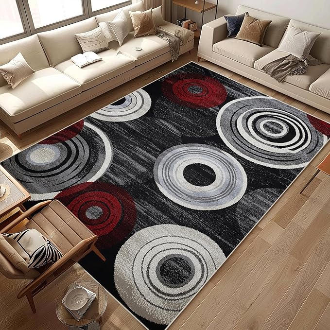 Geometric Area Rug Washable Modern 6x9 Red Black White Rugs for Living Room Bedroom Circle Geometric Soft Non Slip Floor Large Carpet for Entryway Bathroom Office