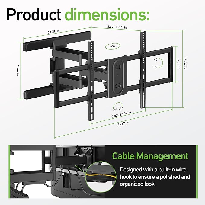 - SIZE: Fits TV sizes from 37" up to a massive 102"