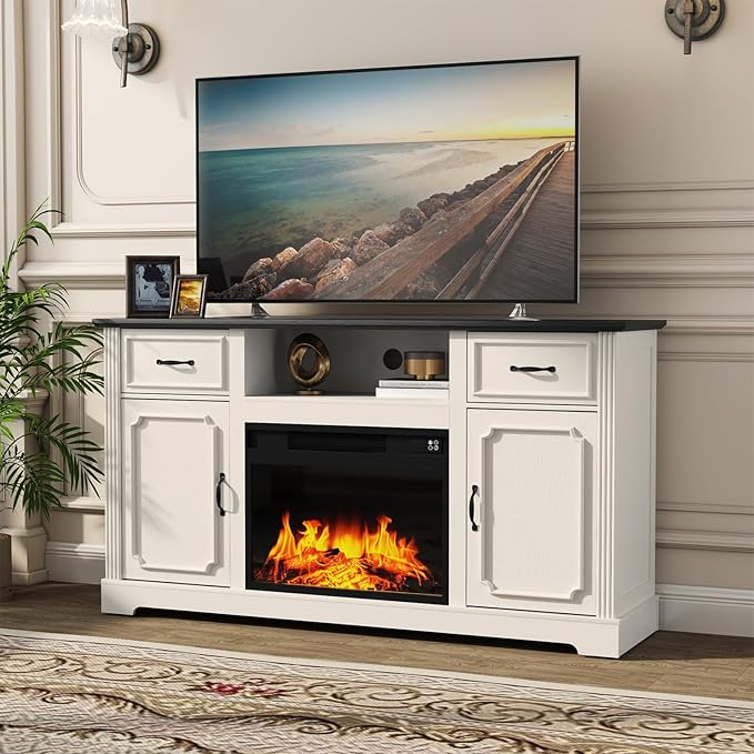 - Entertainment Center with Large Storage - With 2 spacious drawers, 2 cabinets and 1 open shelf, this fireplace entertainment center offers plenty of room to store your gaming consoles, DVDs, remote controls, and other media essentials. Say goodbye to cluttered living spaces and welcome to an organized and tidy home.
